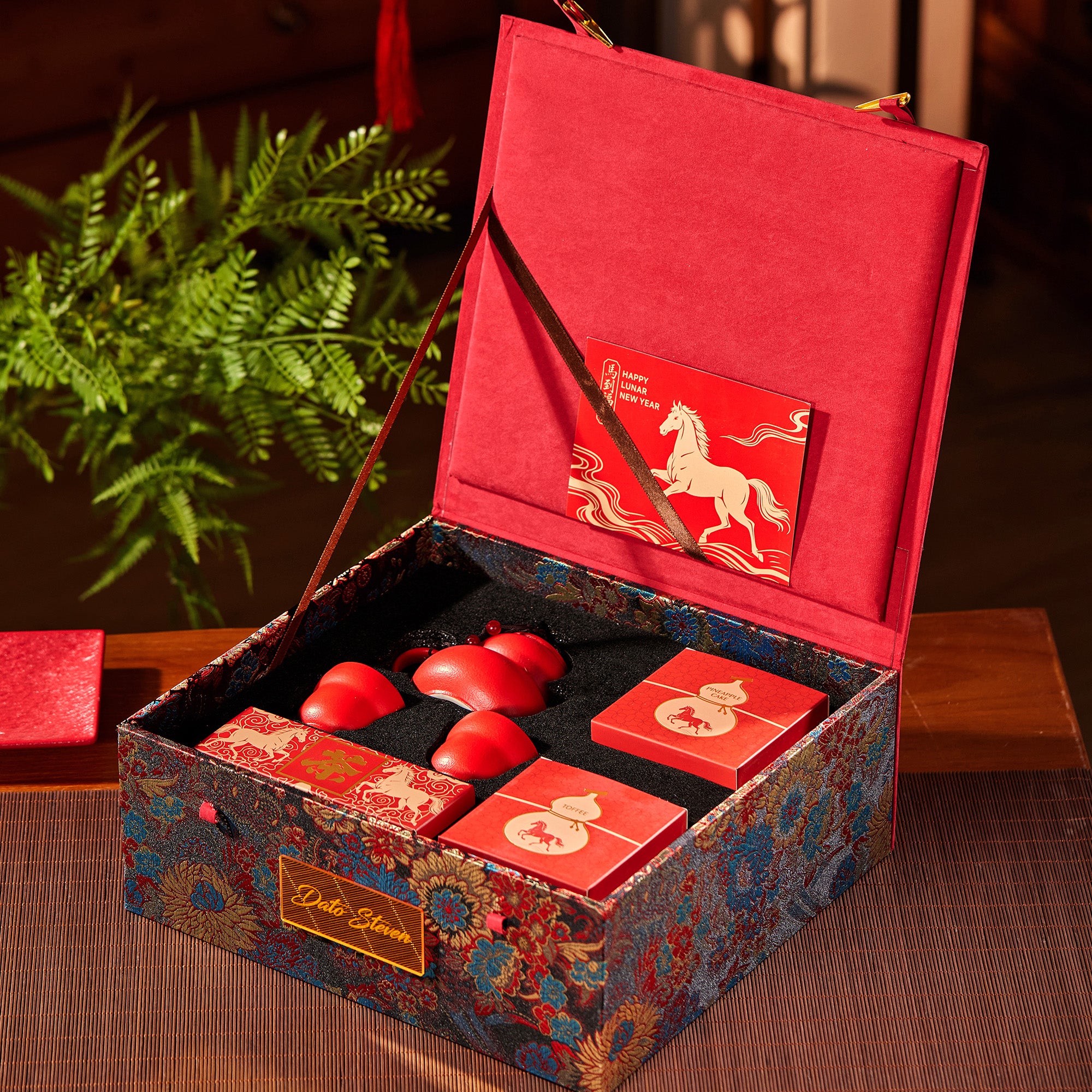 Step into the Year of the Horse with our elegantly crafted gift box, featuring beautiful Traditional Chinese fabric. Thoughtfully designed to deliver the highest value at this price point, it offers a refined and generous presentation.
